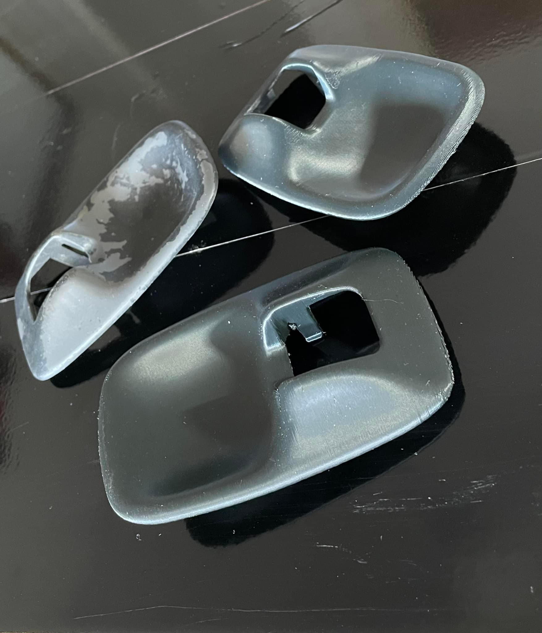 3D-scanned OEM reproduction Subaru Fiori Door Handle Trims. Printed from ASA to withstand interior cabin temperatures and provided a clean, black finish. No flaking on this finish!