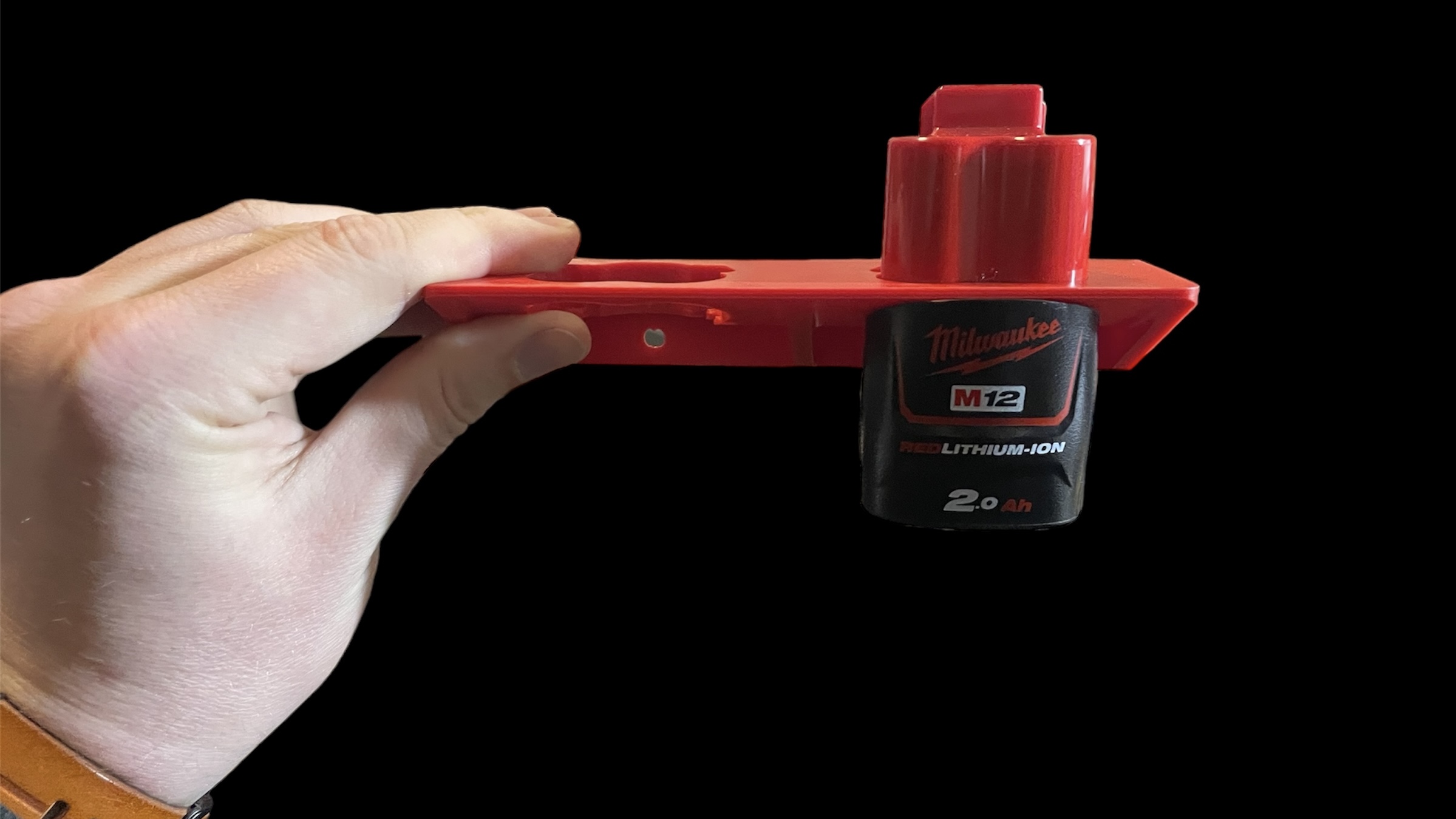 As far as we’re aware, there are no M12 battery holders that the M12 batteries clip in to like ours do. This means you can mount the holder sideways, upside down, under a bench, in a van… and they will not go anywhere! These are seriously a game changer for organising your workspace.