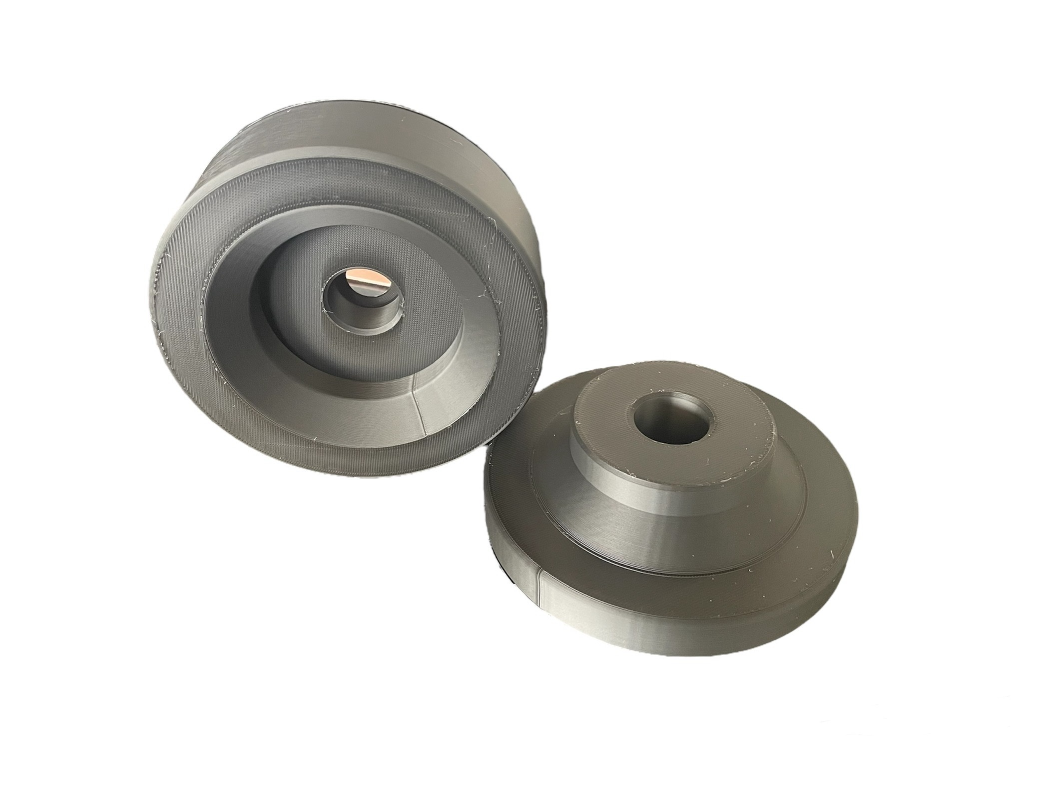 3D printed dimple dies used to press 2mm thick steel sheet. Our R&D team have pressed dozens of holes with this with very minimal wear on the tool. These are a much more feasible option for the DIY’er given their significantly lower cost and relative high-performance when compared with their higher-cost tool steel counterparts.
